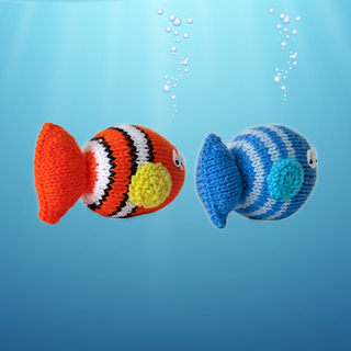 These little fish are super as cat toys or bath toys, or you can knit a few to make a hanging decoration or a crib mobile. If you are making a fish for your pet, please don’t use beads for eyes as they could be dangerous if swallowed, it is safer to embroider the pupils in yarn instead. Designed by Amanda Berry @fluffandfuzz, these fish are knitted in acrylic DK yarns on single pointed needles (not in the round).