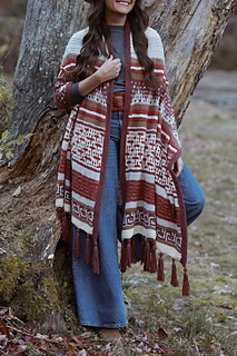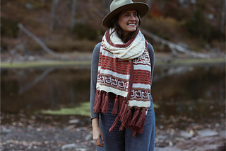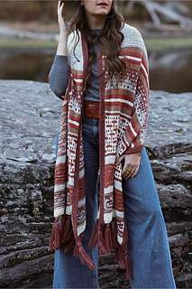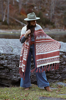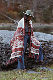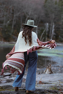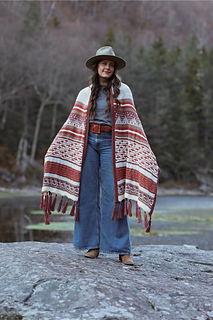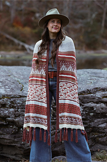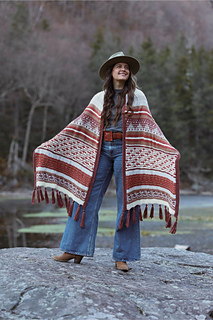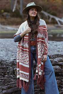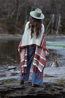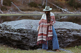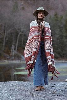 Designed on a road trip from Los Angeles to New York City, the Coast to Coast Wrap is inspired both in form and function by the sites along the way. The shape, size, and weight of the wrap makes for the essential travel companion – oversized and cozy, yet lightweight enough so as not to overwhelm. Each section of colorwork represents a different part of the country, starting at the Pacific Ocean, heading east through the mountains, then the vast countryside with nothing but power lines as far as the eye can see, and finally the arrival into the sparkling city that never sleeps.