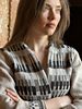 The Coda has quite a few themes running through it! I am fascinated by numbers, sequences, formulas and codes. It actually makes me quite emotional at the beauty of maths. I admire so much the work of the women at Bletchley Park during WW2, breaking codes; this is my homage to them; a forties inspired style, with shape and set in sleeves and a high neck with a pattern that is a whole series of codes.