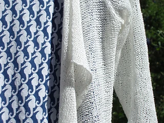 - The sample is knitted with Shibui Linen. This yarn drapes beautifully after blocking and softens up over the time. Blocking also will make stitches flatter and will stretch both sideways and lengthways.