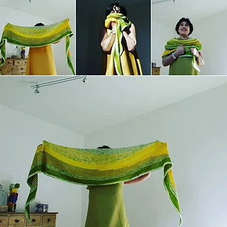 Please note that this shawl is a tad smaller and has a more curved shape than the one in tester’s projects because I improved the construction and had to make small changes.