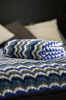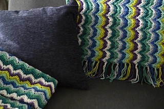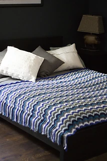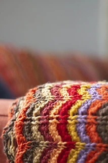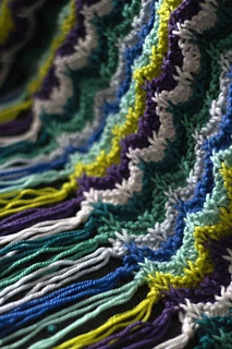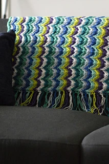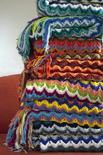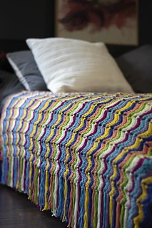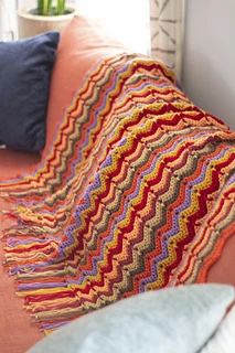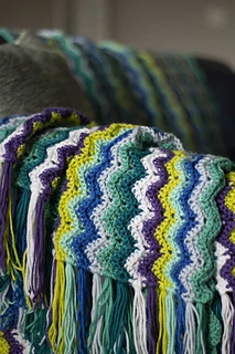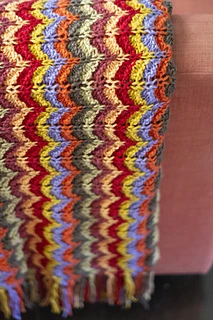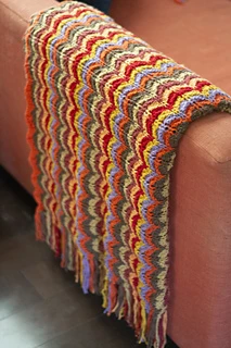 Both knit & crochet versions of this afghan are worked lengthwise. When changing colors, leave an 8” tail in both colors of yarn. There is no need to weave in these ends because they become part of the fringed edging later.