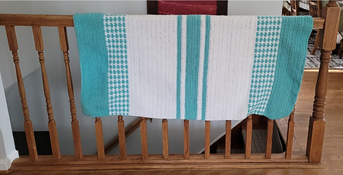Colorwork Throw in Blue. A pretty unisex blanket pattern. Easy row repeat on the solid sections for a quick make. Can easily be adjusted to any length or width. Make it in your favorite 2 colors, or even team colors for him.