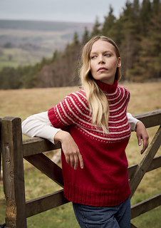 Garment is worked from the top down with yoke shaping. Sleeves are held on a holder whilst the body is completed, then returning the sleeves with are worked down to the cuff on circular or dpns.