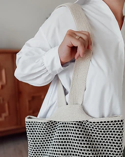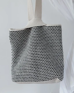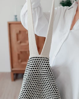 Approx. 19 sts x 22 rows = 10 x 10 cm {2.5” x 2.5”}- for the pattern used on the bag’s sides.