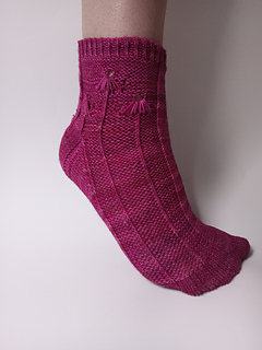 These socks are a garden on your needles: playful, elegant, and surprisingly simple. A single yarn over becomes the heart of the bloom, while petals radiate outward in a stitch pattern that feels like magic without demanding much thought.