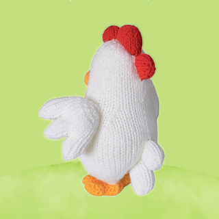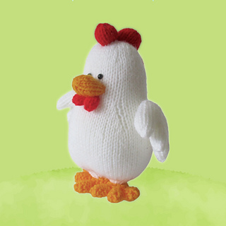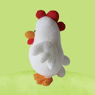 Crow-a-doodle-doo! Cooper the Chicken crows hello. Designed by Amanda Berry @fluffandfuzz, this toy is knitted in acrylic DK yarns on single pointed needles (not in the round).