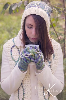 A whimsical cold weather mitten that uses guided surface stitching…I’m not going to let you do those swirls blind! So have no fear because chain 1 spaces will guide the way.