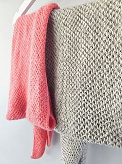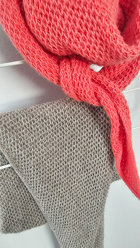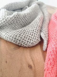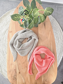 The Coral Cove Scarf is a small, asymmetric triangle scarf worked through in a honeycomb brioche pattern. The models shown above are knit in sport and fingering weight yarn respectively, so you can see that it can be worked with different yarn types and weights, as long as they ensure the brioche pattern works well with it.