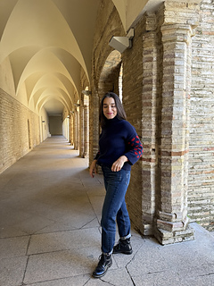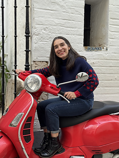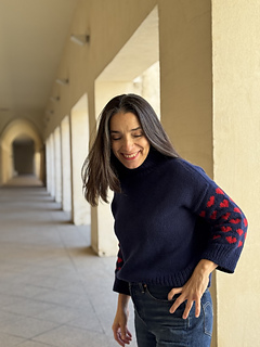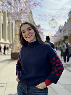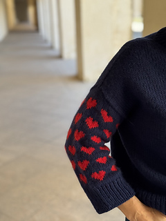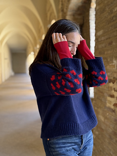 En el modelo de la fotografía hemos usado: LAMANA Como grande (100% Wool - Merino Superfine) color principal - Navy 11 y color contraste - Carmine 33