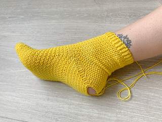 A 3.5mm crochet hook is used for the majority of the socks with a 2.5mm recommended for the cuff and toes.