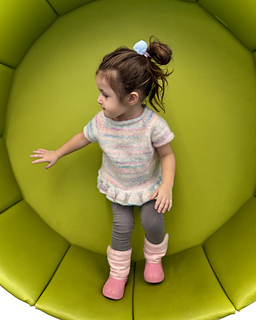 The Cotton Candy Raglan is a seamless, top-down knit sweater designed for little ones who love soft colors, cozy layers, and twirly details. This design began when Maggie picked out her own yarn and proudly declared it her “cotton candy sweater”—and the name (and feeling) stuck.