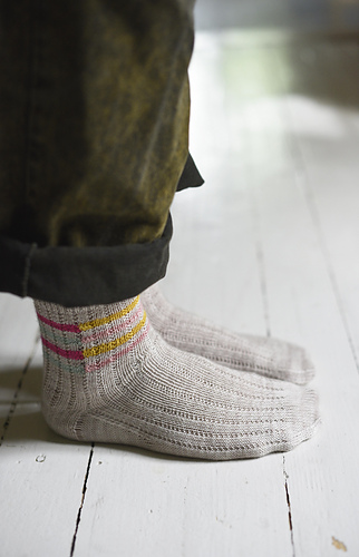 Inspired by clean lines and court-side style, these socks blend everyday wearability with a playful twist. The textured fabric adds structure and stretch, while a few intarsia stripes add that perfect pop of energy.