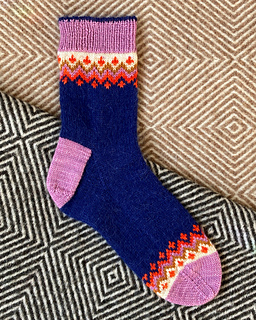 The COZY SEASON socks are worked cuff down and have a well-fitting heel flap and gusset construction. The short sections of colorwork make these sock a super fun project. You’ll get through the cuff fast to see the colorwork unfold for the first time. Then you can indulge in quick and mindless Stockinette for the foot, before you finished off the sock with the second colorwork section and simple toe decreases.