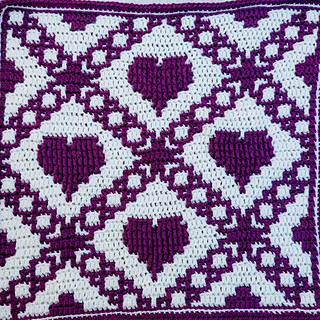 Create this cute heart motif blanket or cushion using simple overlay mosaic crochet techniques.
