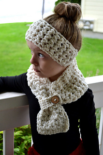I am always on the lookout for something cute for my daughter. I was looking for something to keep her warm, she doesn’t like hats and doesn’t care for how long scarfs are. So I started playing with a design and loved how it came out. This lovely scarf and headband feature a unique stitch that reminds me of clusters that look like they are crossed, or like stars, or something cozy and warm. I just love it.