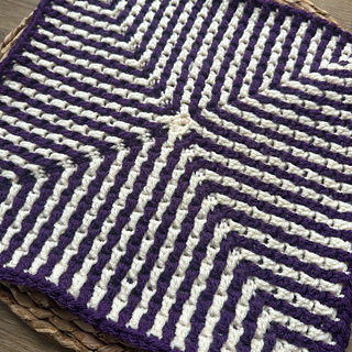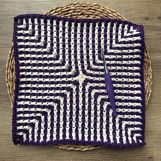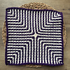 If you like clean lines and graphic designs, you’re going to love the Crossroads Mosaic Crochet Square, a bold design worked in overlay mosaic crochet in the round. This 12 x 12 inch blanket square features strong, angular lines that create a beautiful optical illusion, giving the square a sense of depth and movement as the pattern expands from the center outward.
