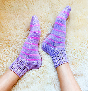 ~ ALL of the monthly chart pages that have been released up to the point of your purchase. (Original release date: August 1 2025). Each Chart Page contains pictures of the finished socks, the Chart (of course) and detailed instructions for how to work the chart into your Base Pattern!