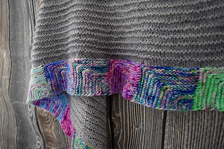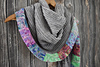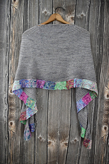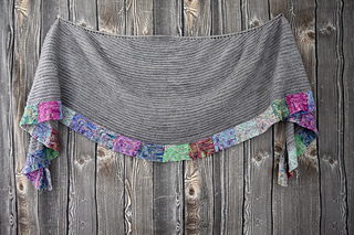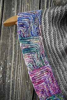Curved and Squared is a crescent shape shawl with a mitered square bind off used to play with color and utilize your precious leftovers from other projects.