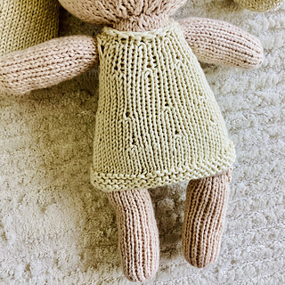 Head worked seamlessly, in the round, starting at the top, and finished at the neck; face details embroidered using duplicate stitch and simple embroidery stitches
