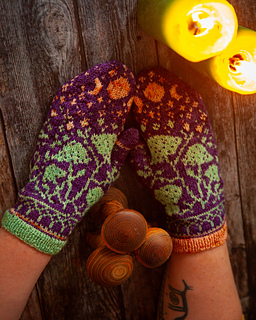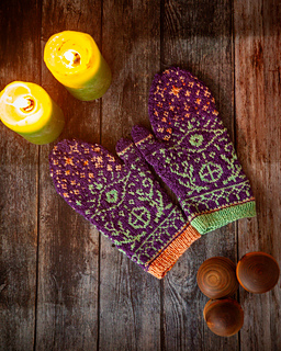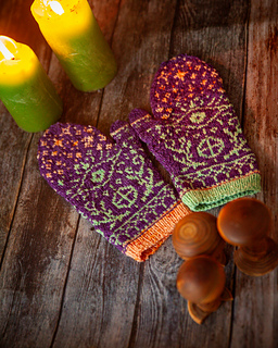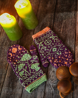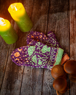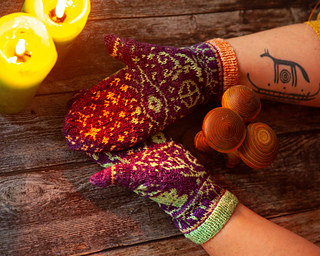 This pattern guides you step by step to knit mittens adorned with mushrooms and wicca symbols, perfect for adding a magical touch to your winter accessories.