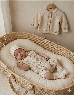 This pattern has 3 size options from new-born to 3 months old and the size is determined by the needles and yarn used, the details of which are provided in the pattern.