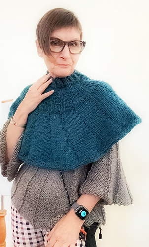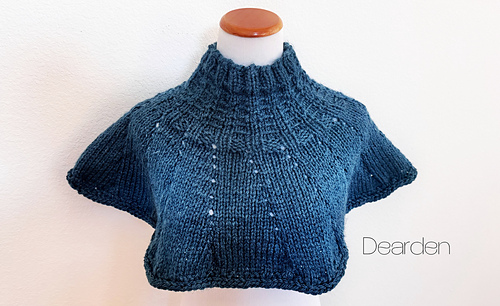 For sure you will enjoy the knit and definitely the wearing of the cozy Dearden shoulder topper.