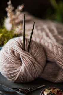 Heavier, densely spun 100% wool yarns can make the fabric feel weighty on the needles and body, so we recommend choosing something with air and bounce.
