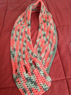 By adding 3 openings on one end, it makes it easy to wear the scarf in a variety of ways and it stays in place without a clasp.