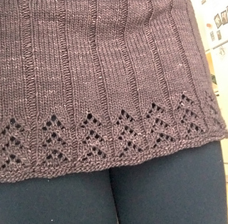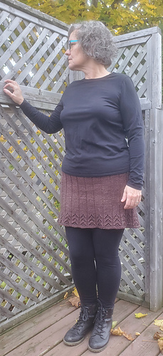 Une jupe avec une finition dentelle toute spéciale, et une ceinture vraiment simple. Mais si vous préférez une simple jupe classique, droite et seulement en côtes plates, c’est possible : vous avez les explications pour la faire ainsi, si c’est ce que vous préférez.