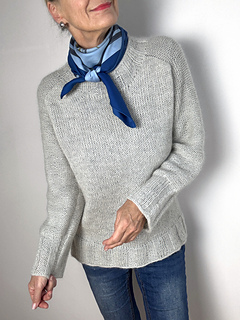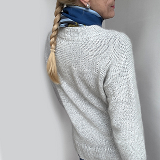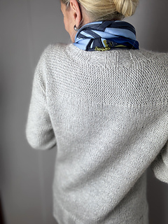 Grey and mauve sample knit in Drops Alapca (165m/50g), and Kid Silk (210m/25g) held together, size M, straight option