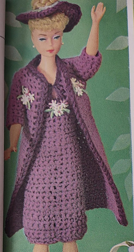 The title is “Doll’s Crocheted Ensemble” in the Needlework & Crafts magazine. It is “Violet Ensemble” in the Doll Fashions magazine.