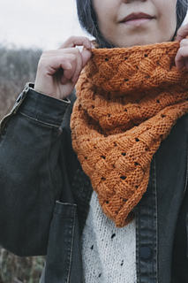Highland is such a great worsted weight - its woolen-spun nature gives a liveliness to each stitch. Knitting it at a slightly loose gauge allows the textured stitch pattern to drape nicely for a snuggly cowl fabric.