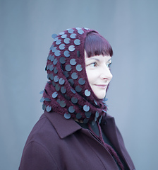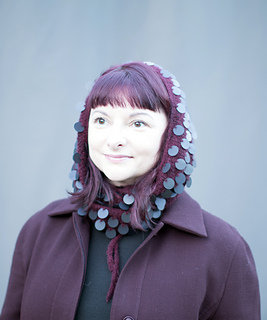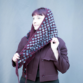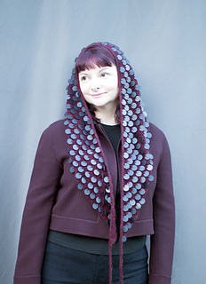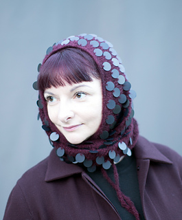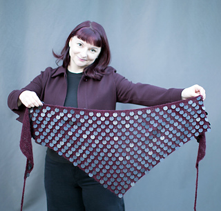 Burgundy sample with matte black sequins, shown in version B with I-cord BO and ties.