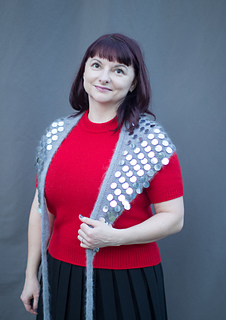 Grey sample with silver mirrored sequins, shown in version A with Double Knit ribbon BO and ties.