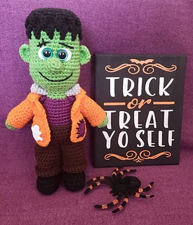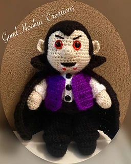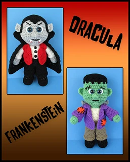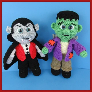 Dracula and Frankenstein are scary cute. Pattern includes instructions to make the Dracula and Frankenstein. Dracula stands approximately 9-10 inches tall and Frankenstein stands about 12 inches tall if using worsted weight yarn.