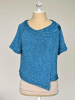 This cardigan is worked in one piece from the top down. Both fronts overlap. One or both fronts can be closed with a button, or the cardigan can be worn open.