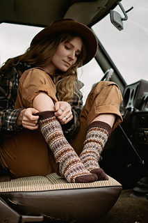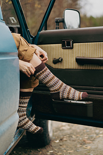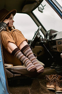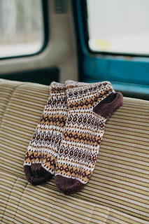 Socks are worked top-down in the round. First the cuff is worked in CC1 followed by a colourwork leg. The CC1 heel is shaped by short rows and the colourwork continues across the foot. The CC1 toe is finished with decreases. Instructions are written for the Magic Loop technique.