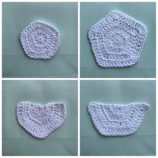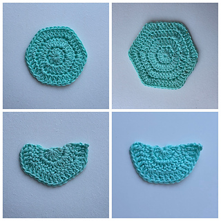 • Pattern Synopsis: Solid hexagon constructed in 3 or 4 rounds. Constructed as circle centre, then hexagon. Pentagon and half hexagon motifs also provided for use in projects. Project Diagrams included.