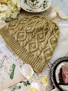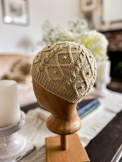 The Echinoidea Hat is knit from the brim up using a tubular cast on. At the crown, the cables decrease into a star shape. This hat is graded for three sizes but can easily be sized up or down by adding or removing one repeat of stitches.