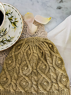 Intermediate. Techniques include bobbles, cabling, decreases, and knitting in the round.