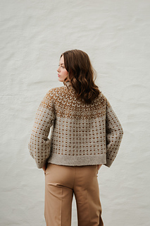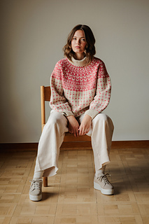 Ease: The ease for this sweater is approx. 28–31 cm depending on your chest measurement. When choosing a size, base it on your own chest circumference and let that determine which size to knit.