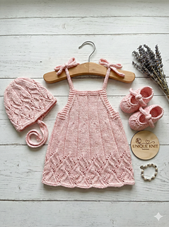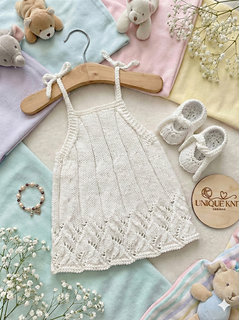 The front and back of the dress are knitted separately, sewn down the sides and the knitted straps can be adjusted to achieve the length you need.