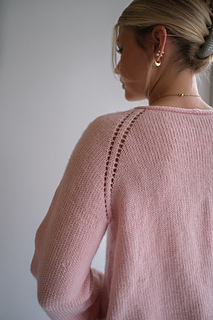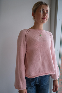 Knitting kit with yarn and free digital knitting pattern for a lovely simple everyday sweater for women. The sweater is knitted from the top down with raglan increases, which makes it easy to adjust the length of the sleeves and body. Nice details with hole cast-ons in raglan, rolled edge body and i-cord edge on sleeves and neckline.