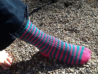 Start at the toe and end at the heel, but wait we forgot the cuff! That’s why they say only Houdini could get into these socks. Using the same method as an afterthought heel, you work the cuff after the rest of the knitting is done. Simple stripes add some extra interest, or just pick one color and go for it!