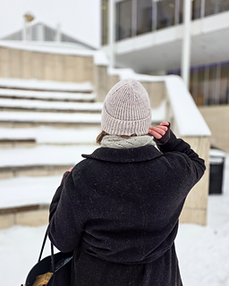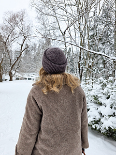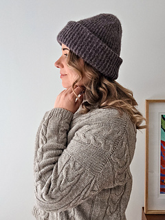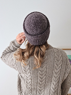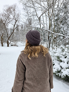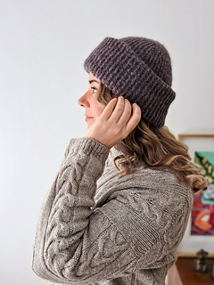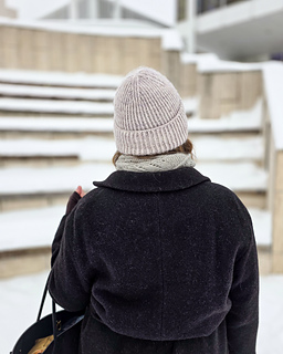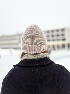 The beanie is worked in 1x1 ribbing, creating a stretchy, minimalistic fabric that fits a wide range of head sizes. For a slightly sharper texture, the ribbing can also be worked as twisted rib. The brim is folded for extra warmth and structure, giving the hat a polished finish and cozy feel.