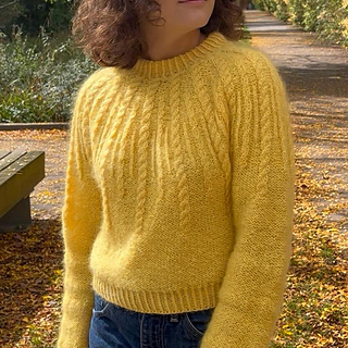 The Eternal Sunshine Sweater is worked top-down in the round, in one piece. The lines of cables echo the rays of a sun, radiating across the circular yoke. The mohair used gives the sweater an airy softness and light, cloud-like feel. I hope you enjoy knitting the Eternal Sunshine Sweater as much as I did, and I can’t wait to see your version.