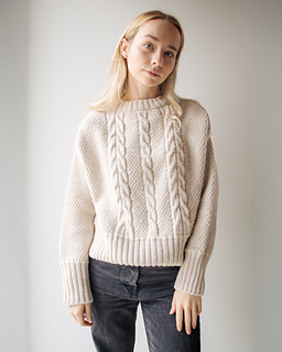 (depending on size) for the body and 40 cm / 16 in for the sleeves (alternatively double-pointed needles) and a cable needle for the cables.