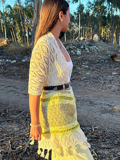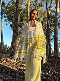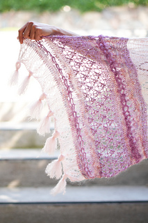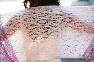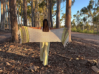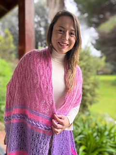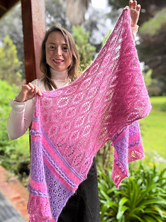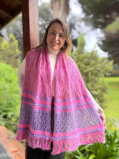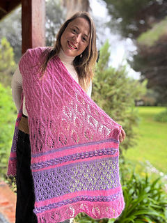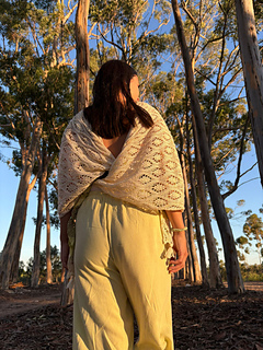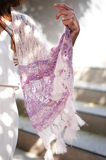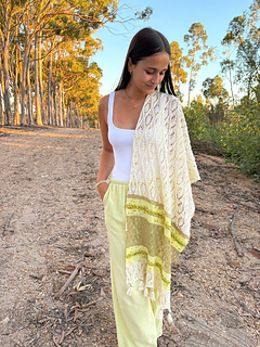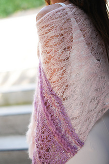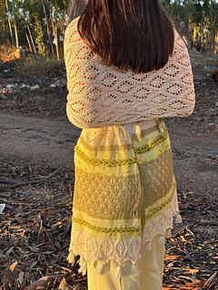 Ethereal Glow es una estola tejida en dos partes sin costuras, unida con una costura.
