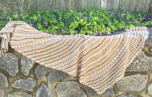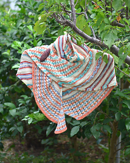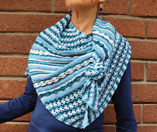 The Euritmia Shawl is an asymmetric triangle worked sideways. It features easy lace motifs.